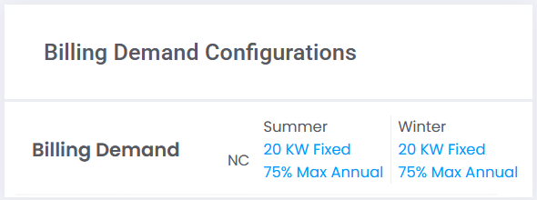 This feature enables users to add demand ratchets as a fixed amount or a percentage of their max demand in a billing period, season, or year. Some demand ratchets only apply to certain demand charges and so users can specify which demand charges to apply their billing demand configurations to.